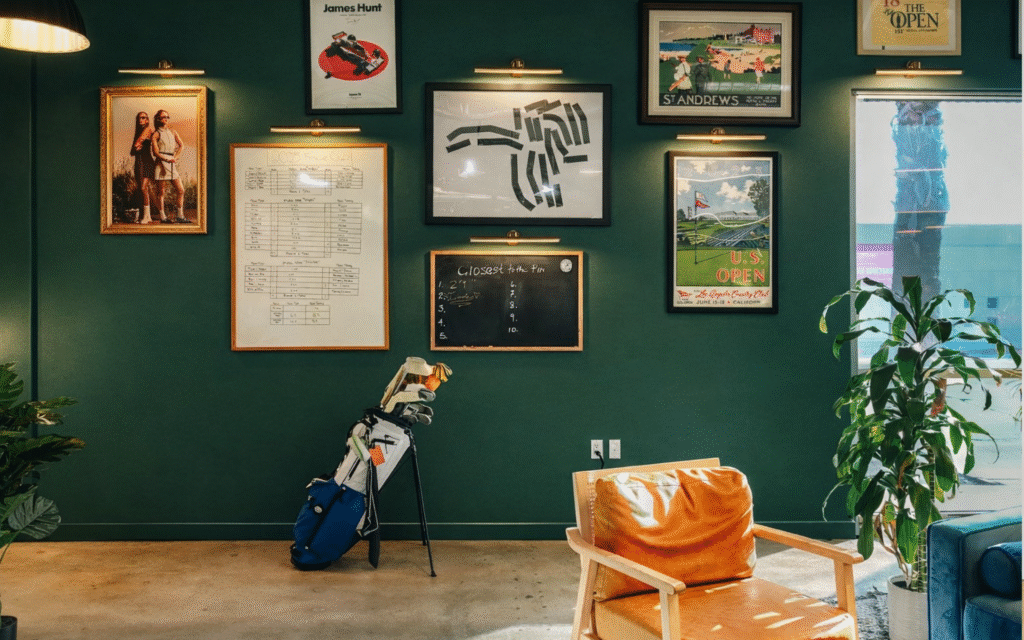 It’s definitely not your typical golf clubhouse, either. “Everybody says it’s a vibe when they walk in here,” Gilmore said. “Aesthetically and culturally, it feels very modern, very curated, very thoughtful, and that’s everything from the artwork to the furniture to the music to the colors you’re going to see. We wanted to find a place that felt like you were walking into a very cool house party every time you arrived.”