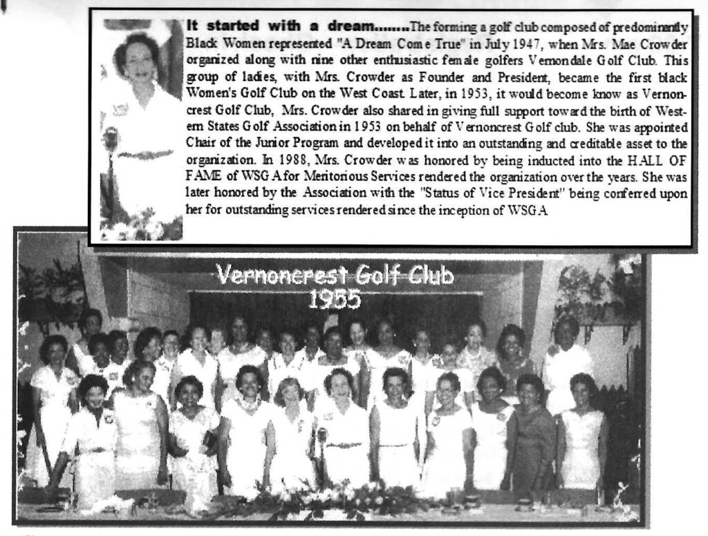 Vernoncrest became an important part of the growth of Black golf and in 1954 was a founding member of the Western States Golf Association — an organization that supported Black golf clubs all over the West. In the early years, it’s believed the Vernoncrest ladies played much of their golf at the Fox Hills courses in Culver City, which were designed by George C. Thomas and William P. Bell in the 1920s and eventually plowed over for houses and the Fox Hills Mall in the 1970s.