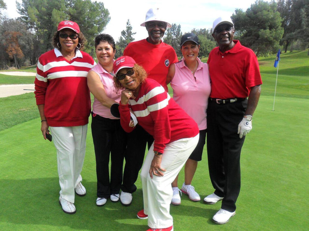 More than any other venue, the Maggie Hathaway GC in South L.A. has been the spiritual home to the Vernoncrest club. A significant amount of the club’s play and lessons have been held there, and the elder members knew Hathaway — the late golfer, entertainer and civil rights activist — personally. Henderson became one of her closest friends. The former Jack Thompson GC was renamed in honor of Hathaway in 1997, and the par-3 track has been vernoncrest club members wear red and white as a tribute to prominent black sorority, delta sigma theta, where many of the founding members belonged. the site of many a first-ever round of golf played.