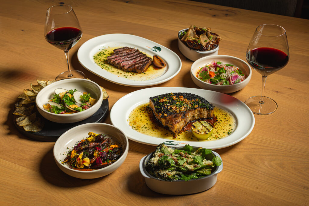 Ember & Rye’s core concept nods to the classic steakhouse while giving it a modern California spin. Blais, known for his inventive approach and eclectic culinary mind, doesn’t simply mimeograph the expected country club formula. Instead, he riffs on it like a cool jazz saxophonist, resulting in a menu that feels both nostalgic and surprising — comfort food elevated by classical technique. As an example, the appetizer “Banh Mi” meatballs get a Hanoisidespin with the addition of pickled veggies and fresh herbs. That and a “Birdies & The Bees” gin cocktail with fennel-bee pollen and yellow chartreuse make for a socko opening act. And dinner was just around the dogleg, so pity me please.