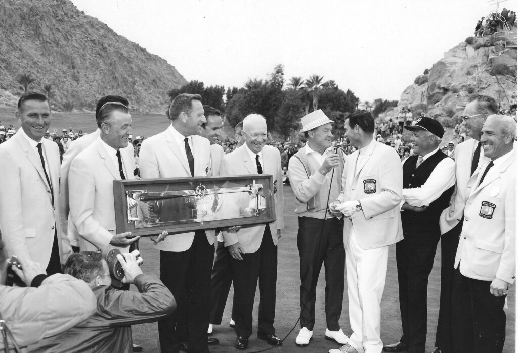 Jocks and entertainers aside, the event’s presidential participation itself is unrivaled. Starting with President Dwight D. Eisenhower’s passion for desert golf, in concert with nearby Sunnylands serving as host for presidential swings and summits, tournament turf and desert escape proved a place where politicos actually smiled across the 20th century.