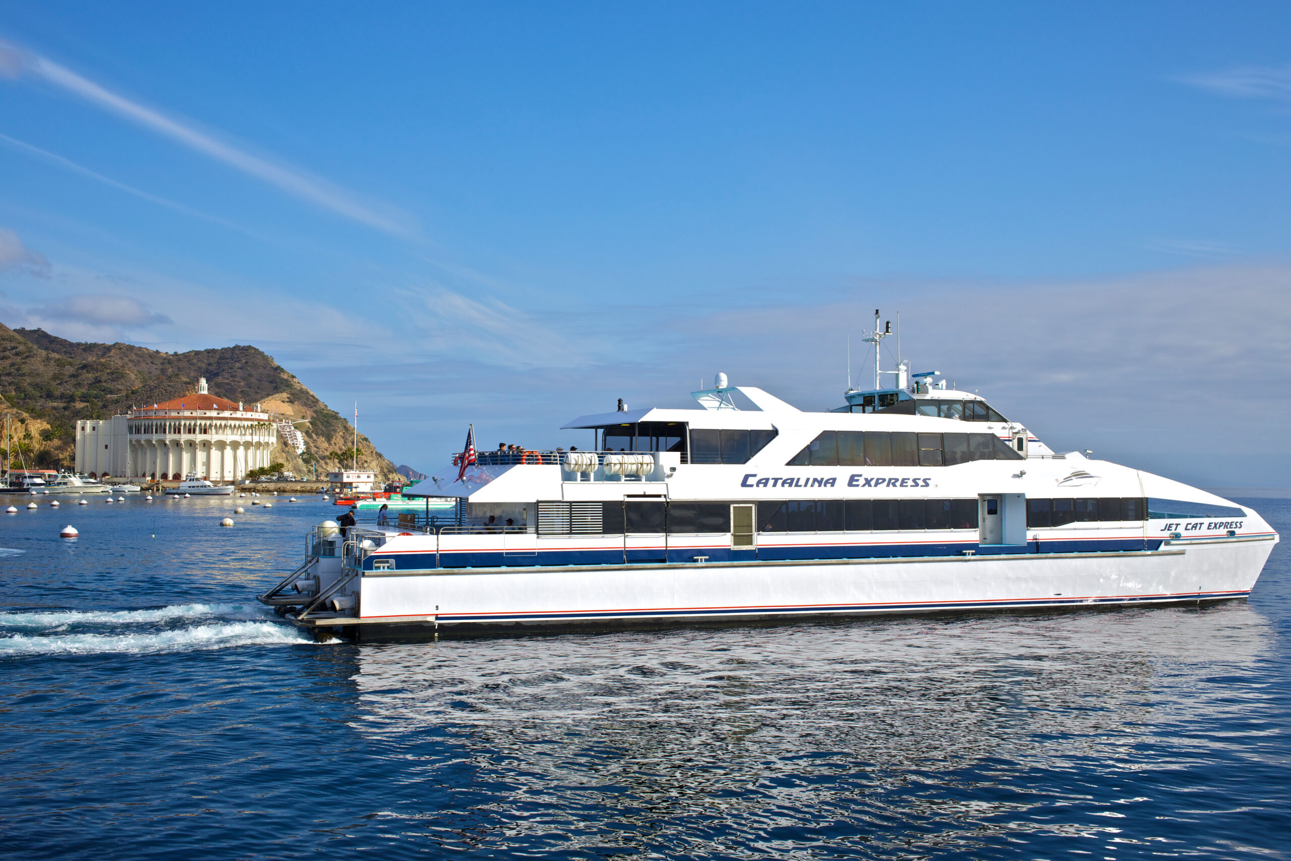 The primary mode of transport to the island is a 70-minute ride on the Catalina Express (departure points from Long Beach, Dana Point and San Pedro) which often rewards passengers with up-close encounters with pods of dolphins or whales.